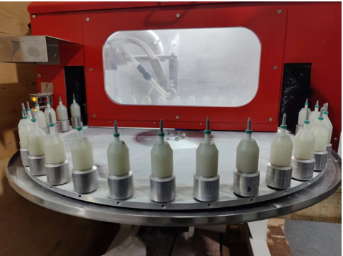 公转加自转平台实现 360° 喷砂
